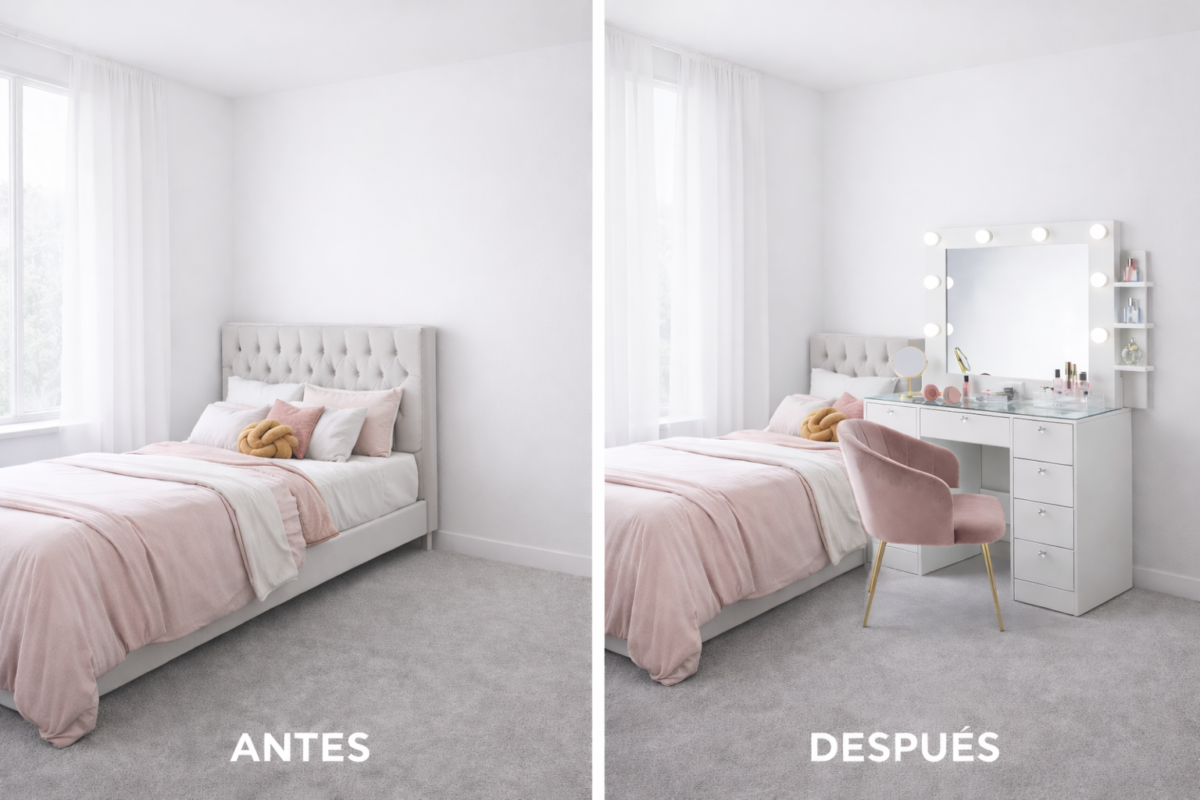 Mira cómo un tocador cambia por completo una habitación.